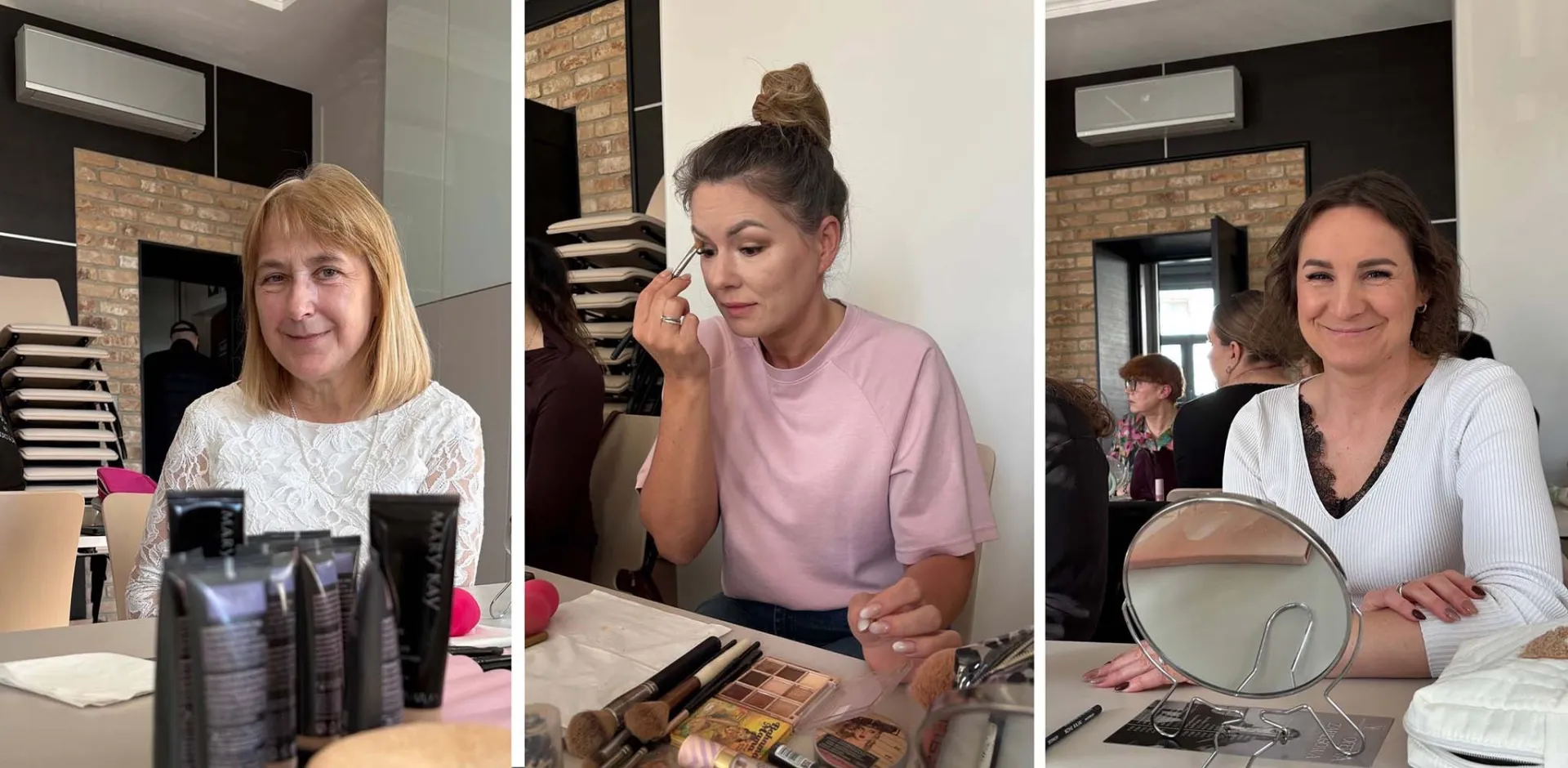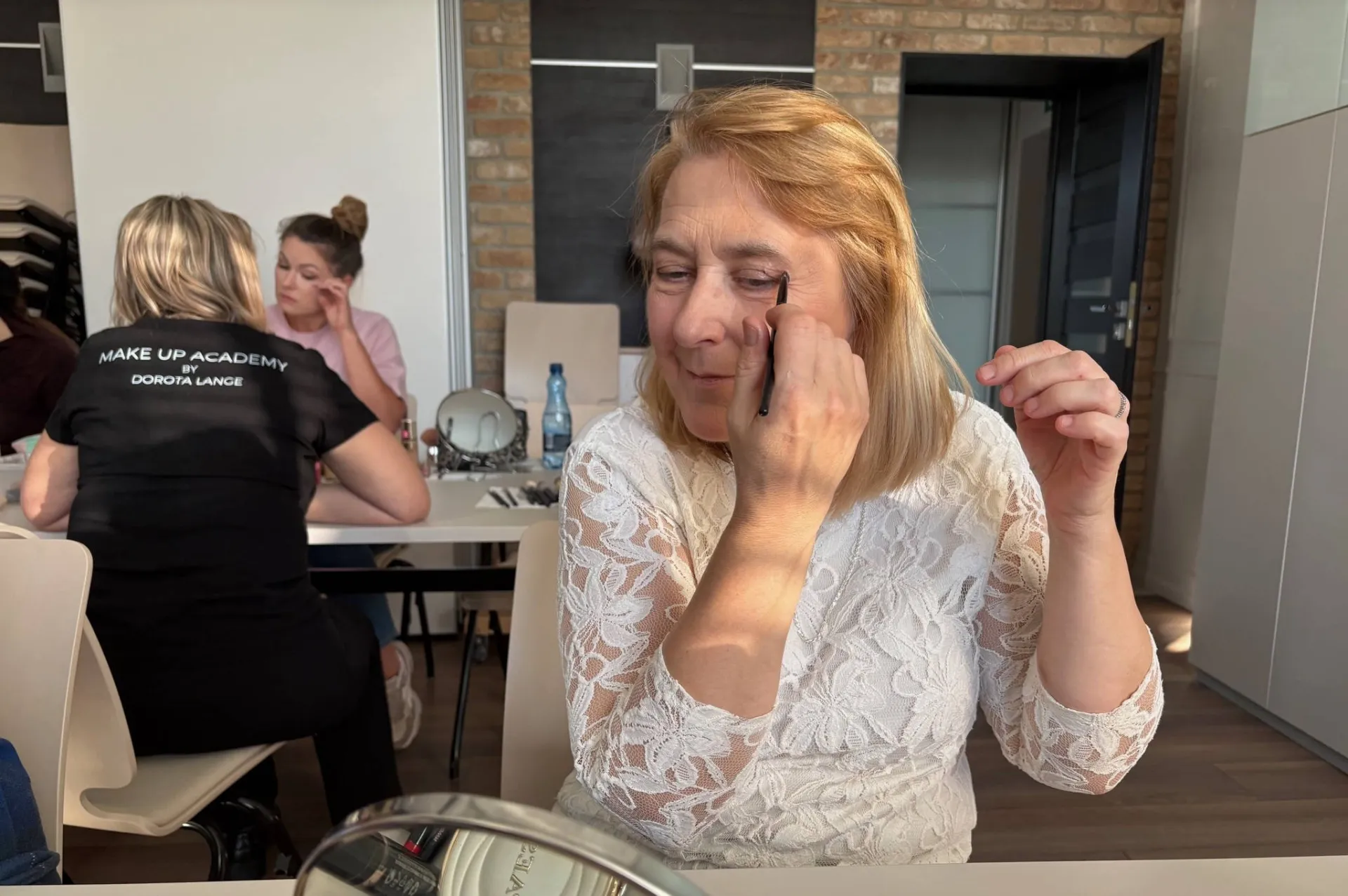 Po czym pani Basia z przyjemnością zajęła fotel modelki i poddała się wszystkim zabiegom, kończąc warsztaty z eleganckim, profesjonalnym makijażem.